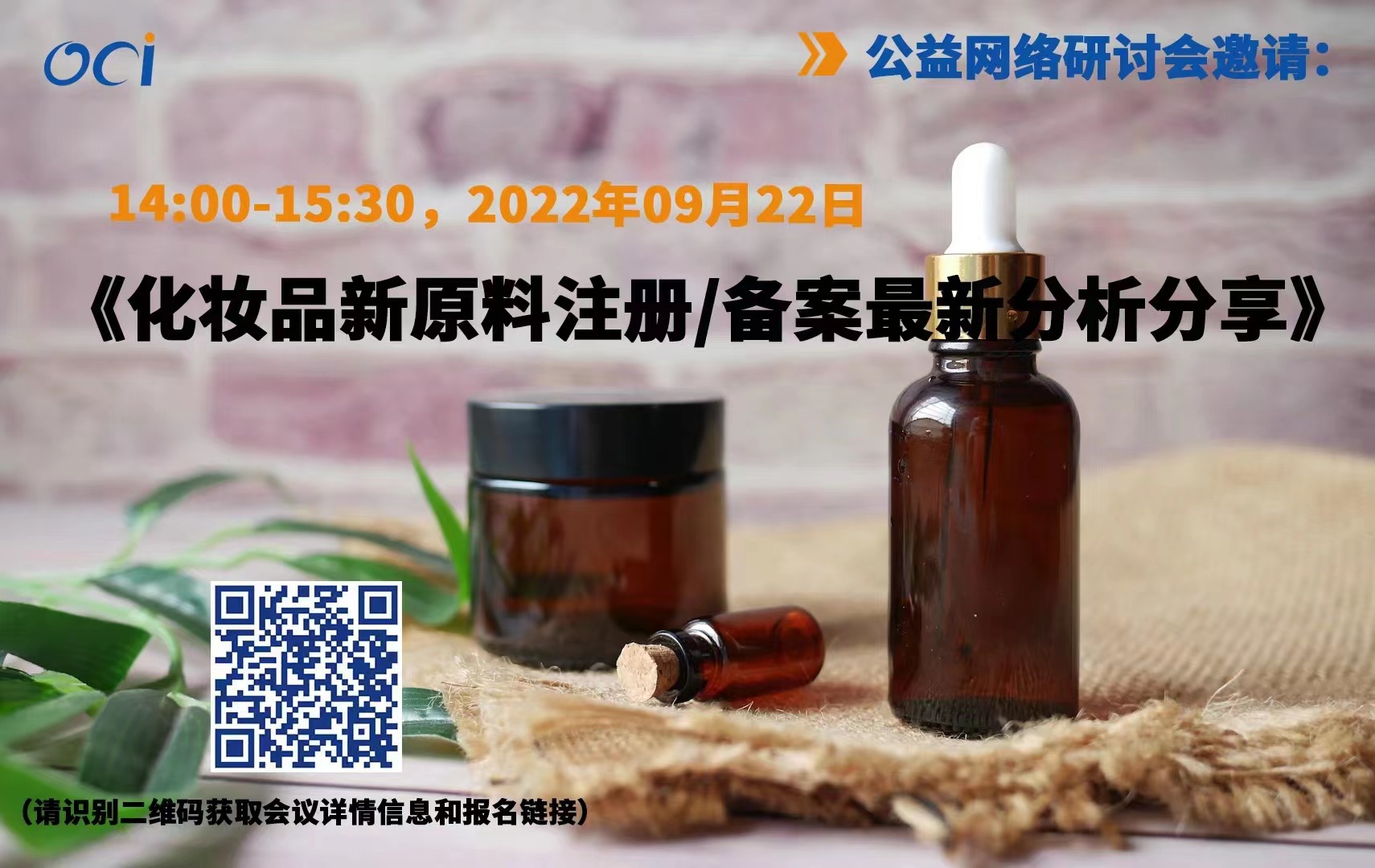 On September. 22nd, OCI will hold a free webinar about “The Latest Insight on Cosmetics New Ingredients Registration and Notification.”