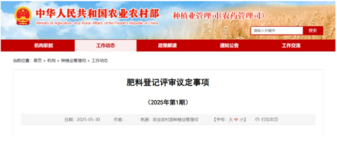 官方动态|农业农村部公布2025年肥料登记评审新规!